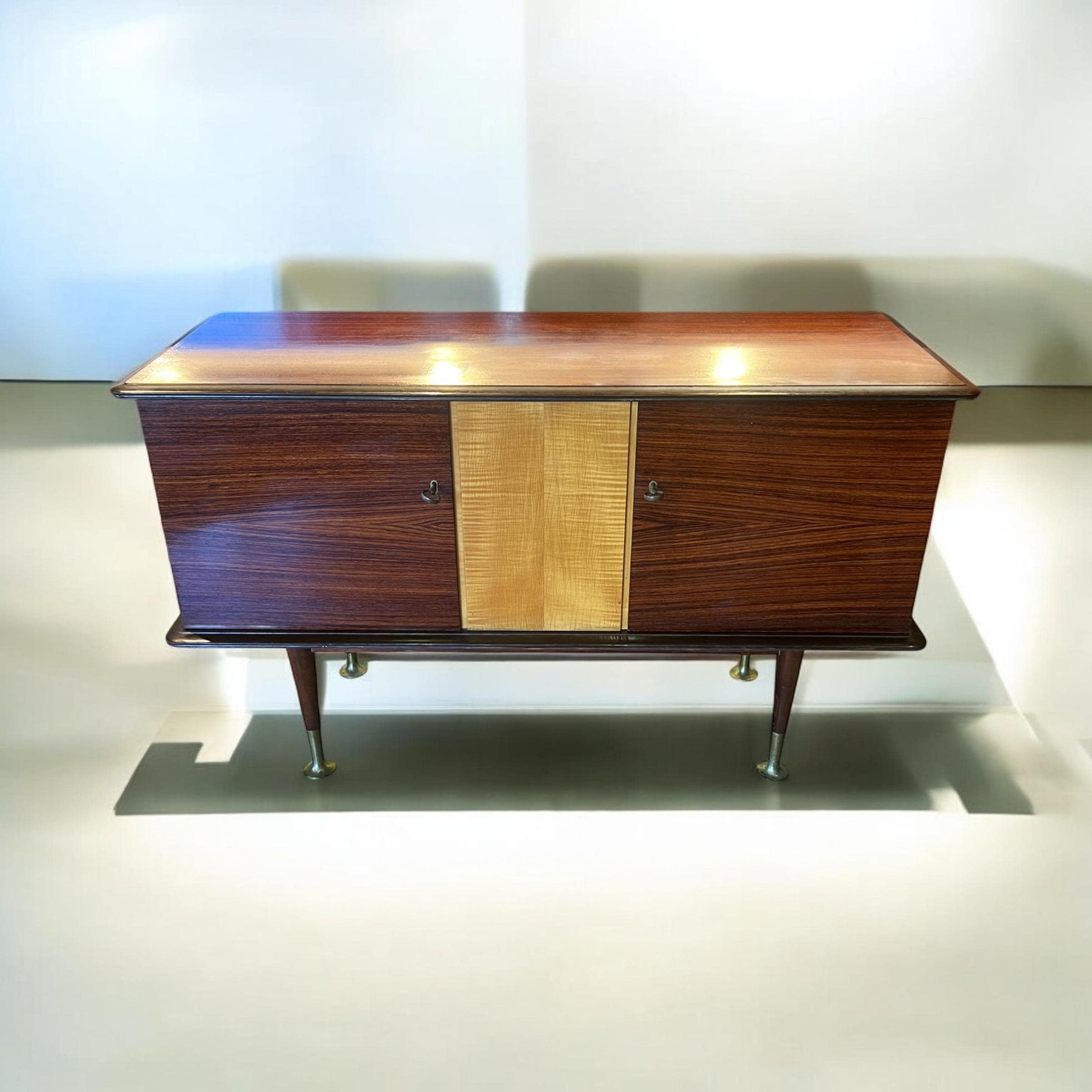 精美的小型青年风格/装饰艺术自助餐柜,配有斜面玻璃和镜子,在 1915 年至 1925 年之间 26400.00元